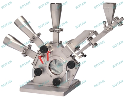 依據上述原則,對粉體的分散采用高速的引射噴嘴將粉 料引射入分級機中,利用高速氣流對粉體的剪切作用,使粉體分散成原級顆粒。此外為使分級后的超細粉達到較高的分級精度,采用射流附壁效應與離心力、慣性力、多級分選組合的途徑。